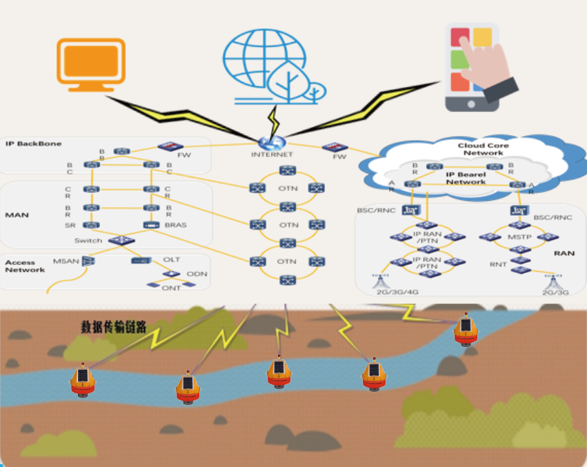 數字河流是指通過大范圍、高密度合理組合布點,通過整合地表水基礎信息,監測地表水各項水質參數與生態流量等,實現對各種水環境質量的全面精準監控,并將以上信息數字化、多維化、高清化、即時化,構建實現重點區域的全天候、無死角精準監控的“云”端在線系統。