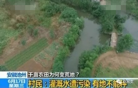 安徽池州河水被污染事件:因化工園違規排污,污染灌溉水源,這些水中含有大量有毒物質,造成安徽省池州市東至縣香隅鎮里的數千畝農田變成了荒地。